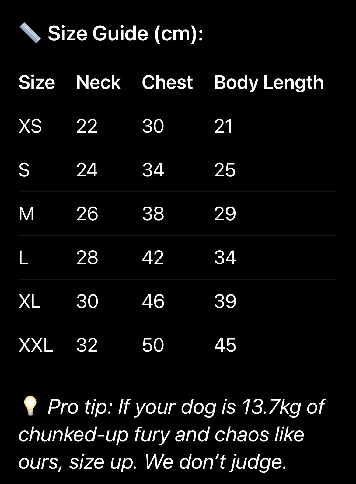 – Sizes XS to L for truth-seeking terriers, truth-sniffing shih tzus, and floofs under 10kg